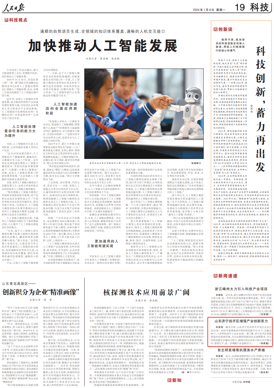 人民日報 | 山東濟寧經(jīng)開區(qū)增強產(chǎn)業(yè)創(chuàng)新活力