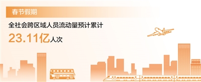 春節(jié)假期全社會跨區(qū)域人員流動量預(yù)計累計23.11億人次