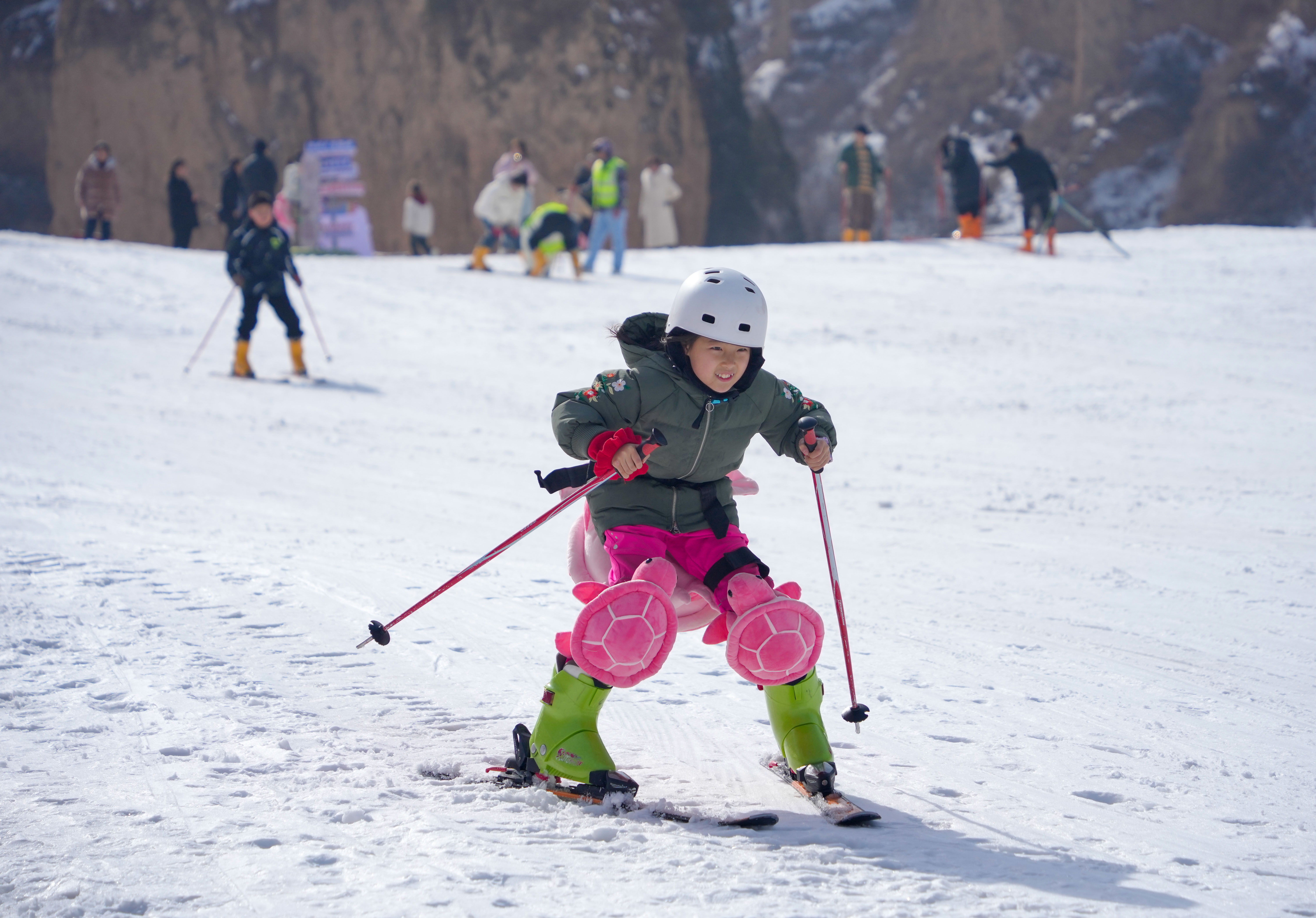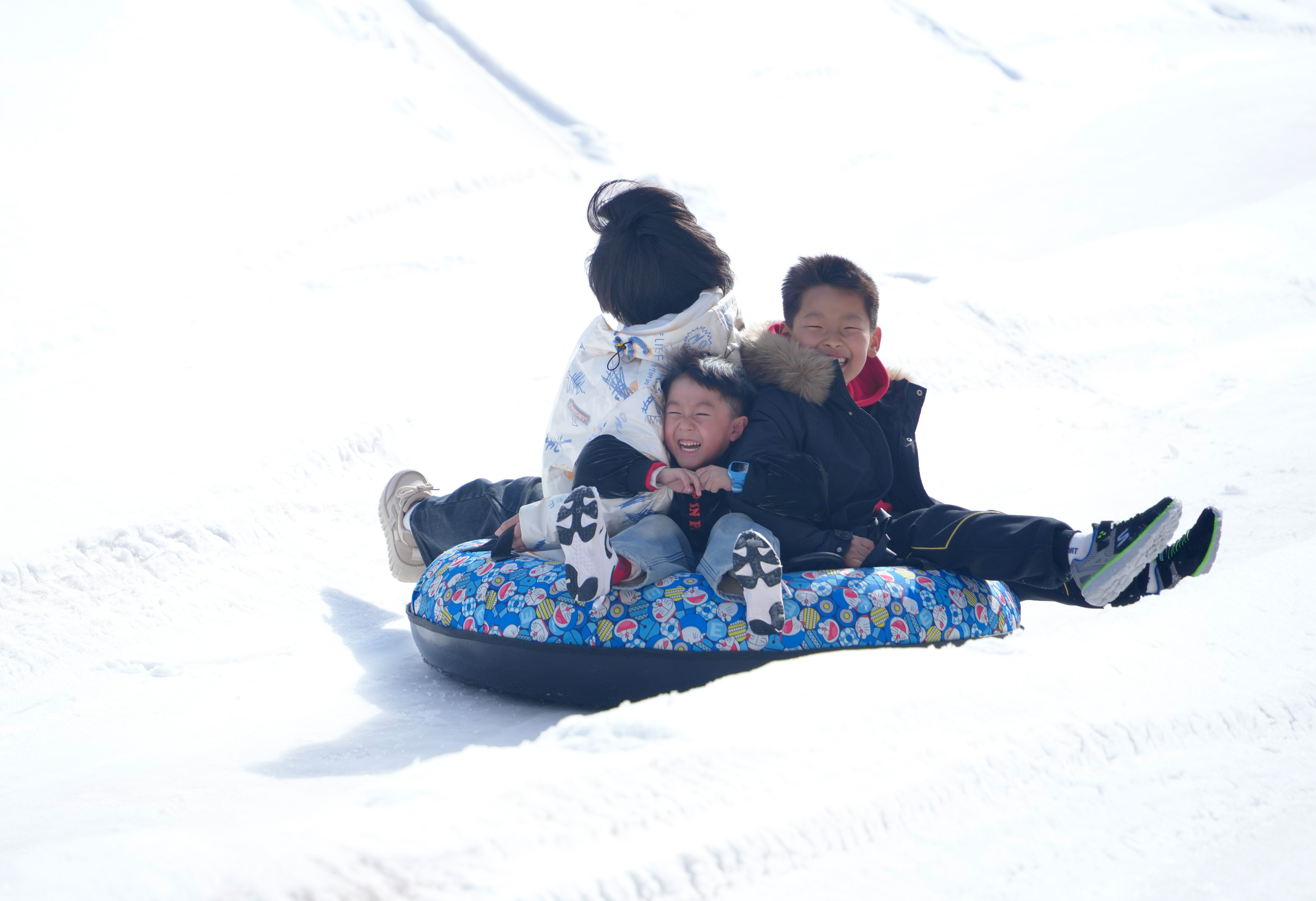 從滑雪坡上乘滑雪圈疾馳而下,大朋友、小朋友“全副武裝”盡情撒歡,游客們在冰雪運(yùn)動(dòng)中增強(qiáng)體質(zhì),樂享春節(jié)假期生活。(閆鑫 攝)