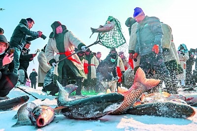 每年1月,博斯騰湖都會舉行冬捕活動,這也是當地歷史悠久的冰雪民俗文化活動之一。經過春天的繁殖,夏天的成長,秋天的肥碩,冬天就成了最好的捕魚時節(jié)。正所謂“三季靠一冬”,每年這個時節(jié),冬捕就是這里最熱鬧、最歡樂的事兒。