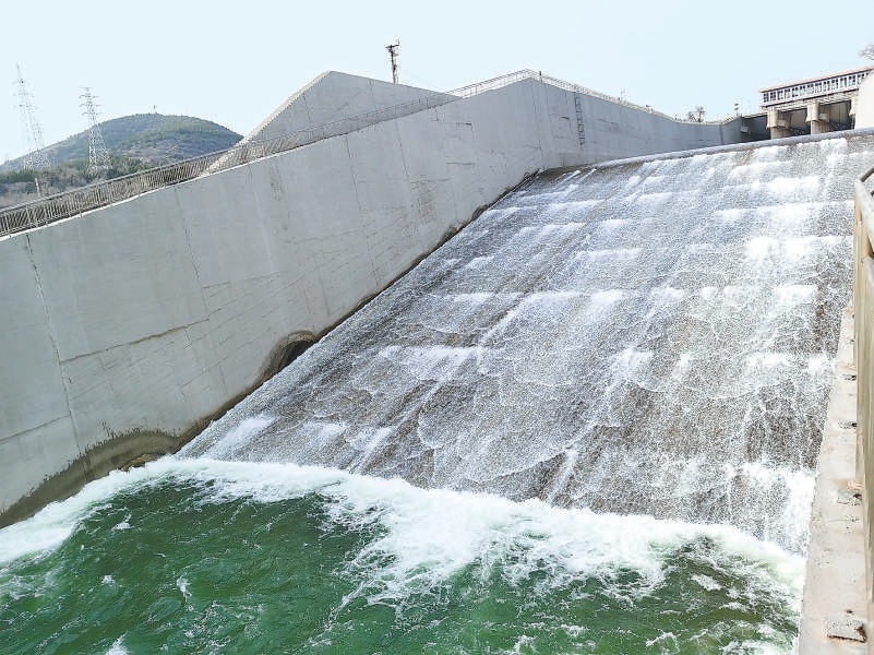 官廳水庫向下游開閘補(bǔ)水。 閆雪攝