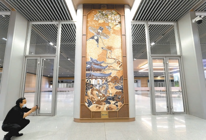 站內(nèi)包含有北京歷史文化元素的裝飾隨處可見。 本報記者 安旭東攝