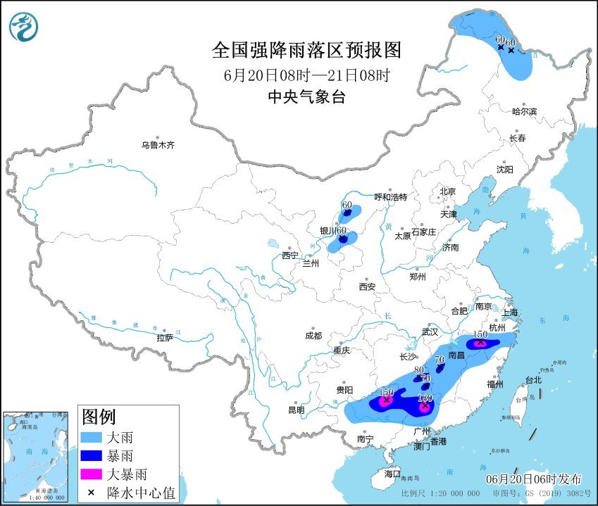 記者獲悉,中央氣象臺6月20日6時繼續(xù)發(fā)布暴雨黃色預警。預計,6月20日8時至21日8時,內蒙古東北部、黑龍江西北部、寧夏北部、江西、湖南南部、浙江南部、華南北部等地部分地區(qū)有大到暴雨。其中,江西東北部、浙江西南部、廣西東北部、廣東西北部等地部分地區(qū)有大暴雨(100~180毫米)。