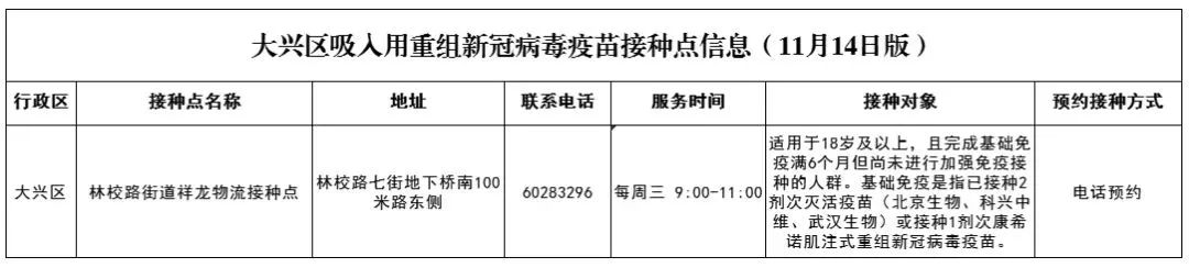 北京大興區(qū)可預約接種吸入式疫苗