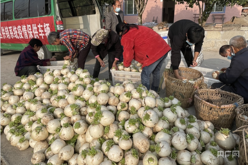 農(nóng)戶將收割好的蘿卜裝車(央廣網(wǎng)發(fā) 巴南區(qū)供銷社供圖)