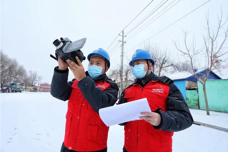 降雪期間,國網(wǎng)興安供電公司烏蘭浩特供電服務(wù)中心鐵西配電運檢班組織工作人員對烏蘭浩特城區(qū)10千伏永雙線開展雪后巡視工作?!熬€路有沒有敷冰情況?”“沒有,一切正常?!毖惨暼藛T認(rèn)真檢查線路的運行情況,手持測溫槍測量著電力設(shè)備的溫度,一旁負(fù)責(zé)記錄的工作人員立即記錄了下來。
