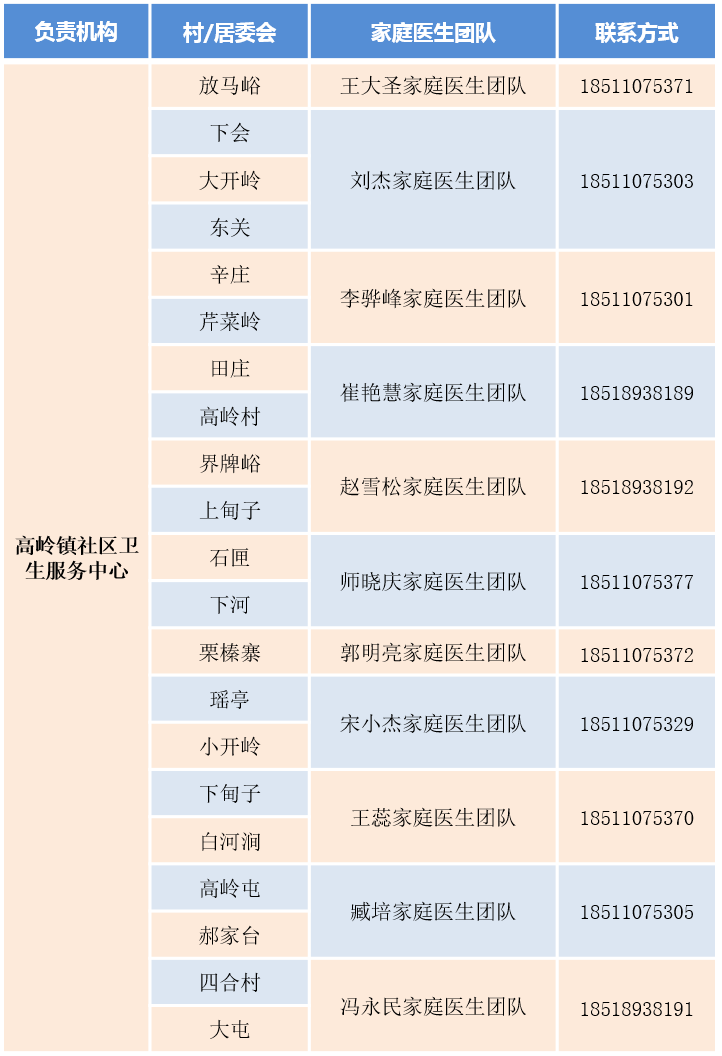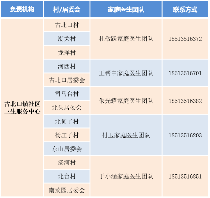密云區(qū)家庭醫(yī)生團隊信息