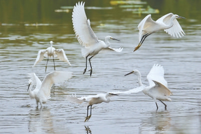 運(yùn)河森林公園附近的白鷺。本報(bào)記者 白繼開(kāi)攝