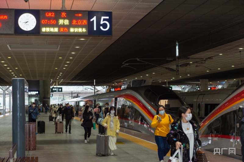 乘客搭乘G82次復(fù)興號(hào)智能型動(dòng)車(chē)組出行(央廣網(wǎng)記者 黃璐璐攝)