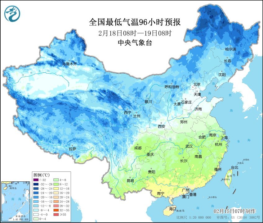 全國最低氣溫96小時預報圖(圖片來源:中央氣象臺)