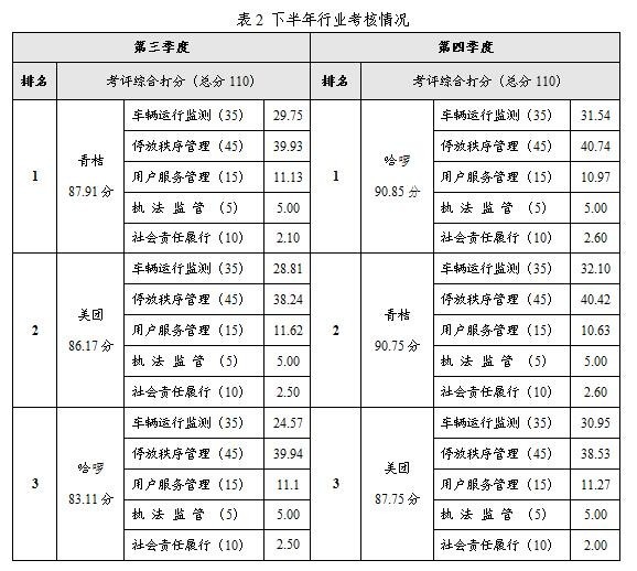 市、區(qū)、街道(鄉(xiāng)鎮(zhèn))管理部門及第三方機(jī)構(gòu)持續(xù)對(duì)單車企業(yè)運(yùn)營(yíng)服務(wù)質(zhì)量實(shí)施綜合考評(píng),中心城區(qū)各單車企業(yè)綜合評(píng)分較上半年有明顯提升。