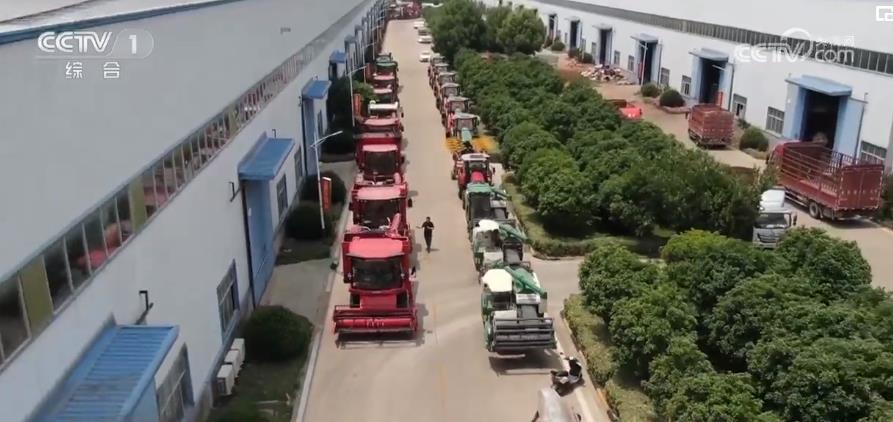 總臺(tái)央視記者 陳博:這里是河南省駐馬店市最大的一家農(nóng)機(jī)專(zhuān)業(yè)合作社,再有5天左右的時(shí)間,駐馬店就將迎來(lái)小麥大規(guī)模機(jī)收作業(yè)。現(xiàn)在在這里我們可以看到這一系列的小麥聯(lián)合收割機(jī)、摟草機(jī)、打捆機(jī)都已經(jīng)完成了麥?zhǔn)涨暗木S修和保養(yǎng)的準(zhǔn)備工作。在這里我們觀(guān)察到一個(gè)新的現(xiàn)象,就是像這樣大馬力、大喂入量的農(nóng)機(jī),它的數(shù)量有了一個(gè)明顯的提升,它們投入到生產(chǎn)中就會(huì)大幅提升麥?zhǔn)盏淖鳂I(yè)效率。與此同時(shí),在我左手邊這些履帶式收割機(jī),它們的數(shù)量也有了增加,在后期如果遇到連陰雨天氣的話(huà),地面會(huì)濕滑泥濘,普通農(nóng)機(jī)下不了田,它們就會(huì)發(fā)揮一個(gè)很大的作用,為后續(xù)的應(yīng)急作業(yè)提供一個(gè)有力的保障。