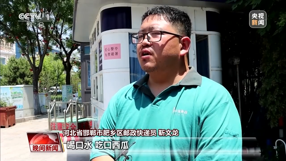 河北省邯鄲市肥鄉(xiāng)區(qū)郵政快遞小哥 靳文龍:多虧了這個(gè)愛心警亭,在這里避避暑,喝口水,吃塊西瓜,涼滋滋的。