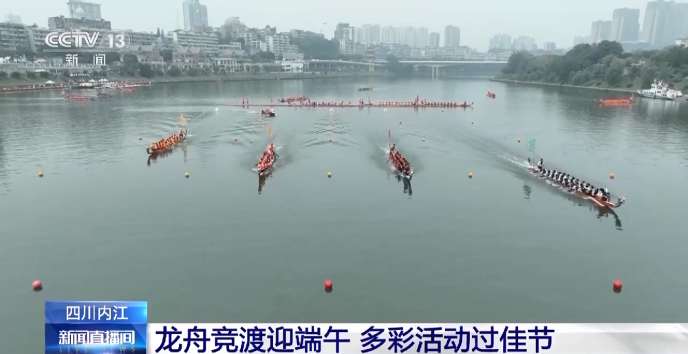 總臺(tái)記者 趙雄:我現(xiàn)在是在四川內(nèi)江市的沱江河畔,我身后的水面上進(jìn)行的是今年端午節(jié)的劃龍舟比賽。在現(xiàn)場我們可以看到,水手正在根據(jù)鑼鼓聲的節(jié)奏,快速地?fù)寗澊瑯乃也⑴诺凝堉劭焖俚貨_向終點(diǎn)。今年的龍舟比賽共分為四組,實(shí)行一輪定勝負(fù),按時(shí)間進(jìn)行最終排名。
