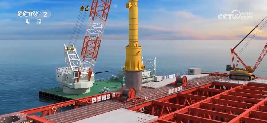 為了給大功率鉆機(jī)搭建一個(gè)穩(wěn)定的施工平臺(tái),2023年年初,一個(gè)重達(dá)7600噸的自浮式鉆孔平臺(tái)抵達(dá)5號(hào)墩位。這個(gè)全新研發(fā)的鉆孔平臺(tái),平面尺寸超過(guò)13000平方米,相當(dāng)于31個(gè)標(biāo)準(zhǔn)籃球場(chǎng)大小,定位誤差卻控制在30厘米以?xún)?nèi),角度偏差小于1度。這在世界橋梁建設(shè)中還是首次嘗試。