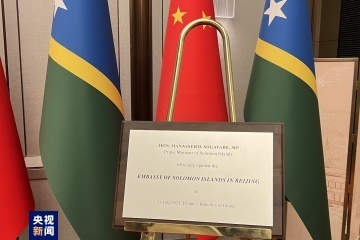 7月11日中午,所羅門群島駐華使館在北京舉行開館儀式。正在中國訪問的所羅門群島總理梅納西·索加瓦雷出席儀式。