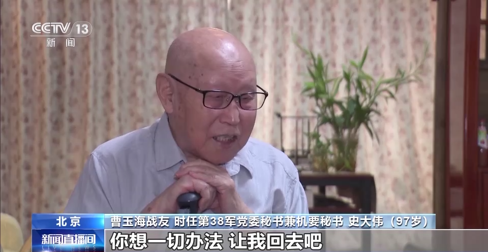 曹玉海戰(zhàn)友 時任第38軍黨委秘書兼機要秘書 史大偉:原來38軍的軍政委梁必業(yè)就說,別人的事都好辦,你這個事不好辦,因為你已經(jīng)轉(zhuǎn)業(yè)了。曹玉海當(dāng)時非常懇切,老首長,我是在114師342團長大的,你想一切辦法,讓我回去吧。