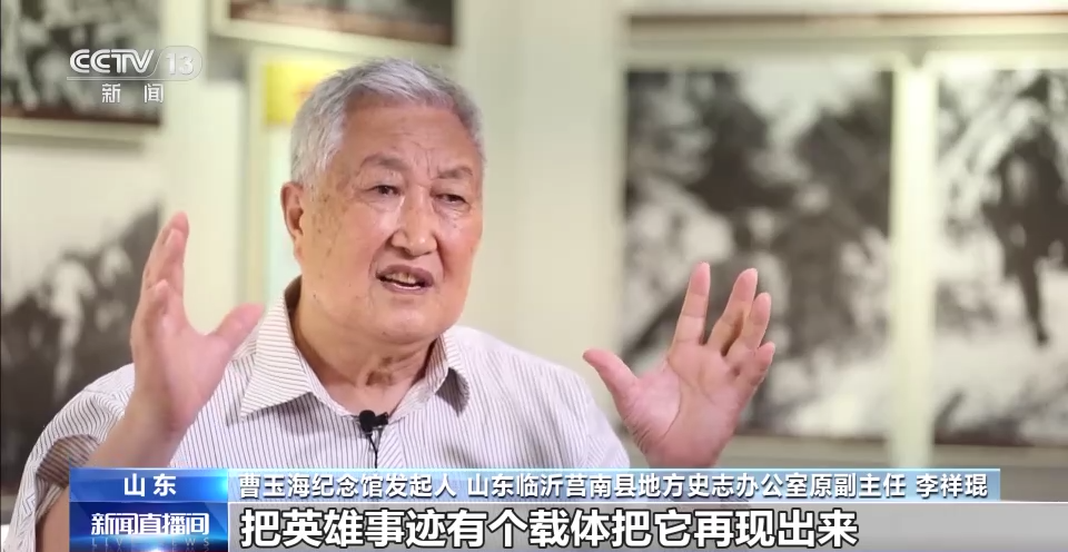 曹玉海紀(jì)念館發(fā)起人 山東臨沂莒南縣地方史志辦公室原副主任 李祥琨:建曹玉海紀(jì)念館就是把英雄事跡有個載體把它再現(xiàn)出來,教育和鼓舞、沂蒙人民不斷前進、艱苦奮斗、奪取勝利。