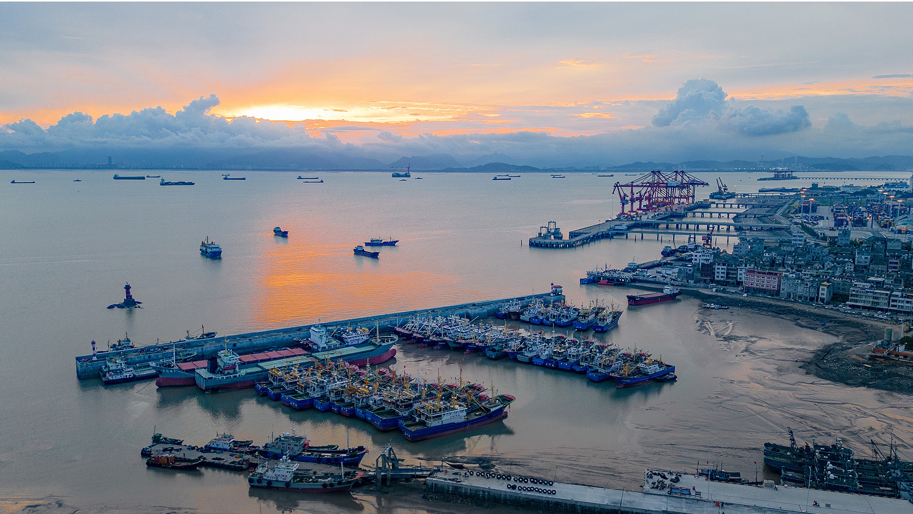 2023年7月24日,浙江臺州,避風漁船停靠在玉環(huán)市大麥嶼二級漁港。