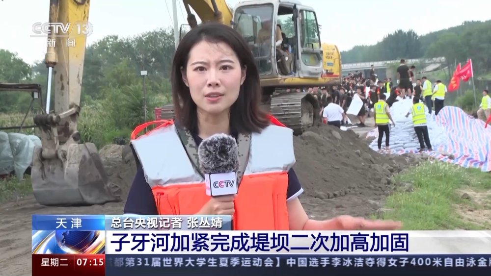 總臺央視記者 張叢婧:可以看到,現(xiàn)場的500多名搶險救援人員正在對這段大堤進(jìn)行持續(xù)加高加固作業(yè)。筑牢防洪堤壩,保障洪水繞城而走,安全有序入海。