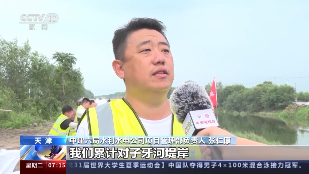 中建六局水利水電公司項目管理部負(fù)責(zé)人 張仁厚:我們累計對子牙河堤岸進(jìn)行7.9公里的加高加固。接到緊急施工任務(wù)以后,我們迅速抽調(diào)人員、設(shè)備,將子牙河左岸堤壩由7米加高到8米,此項工作一到兩天內(nèi)施工完成。