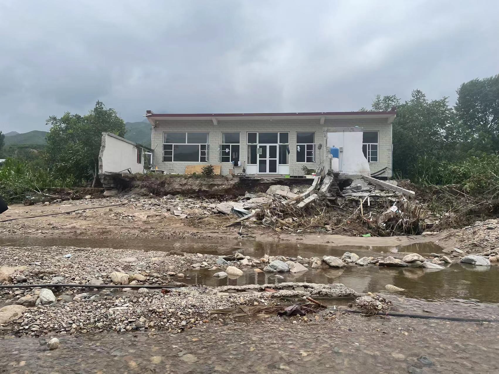 “根本來不及拿物品,房子的外墻就徹底塌了?!蹦緲氛f,一家人跑到馬路上后,看著家里的房子,無比后怕?!叭绻覀兺沓鰜韼追昼?,或者睡在小房里,可能就被水沖走了?!?/p>