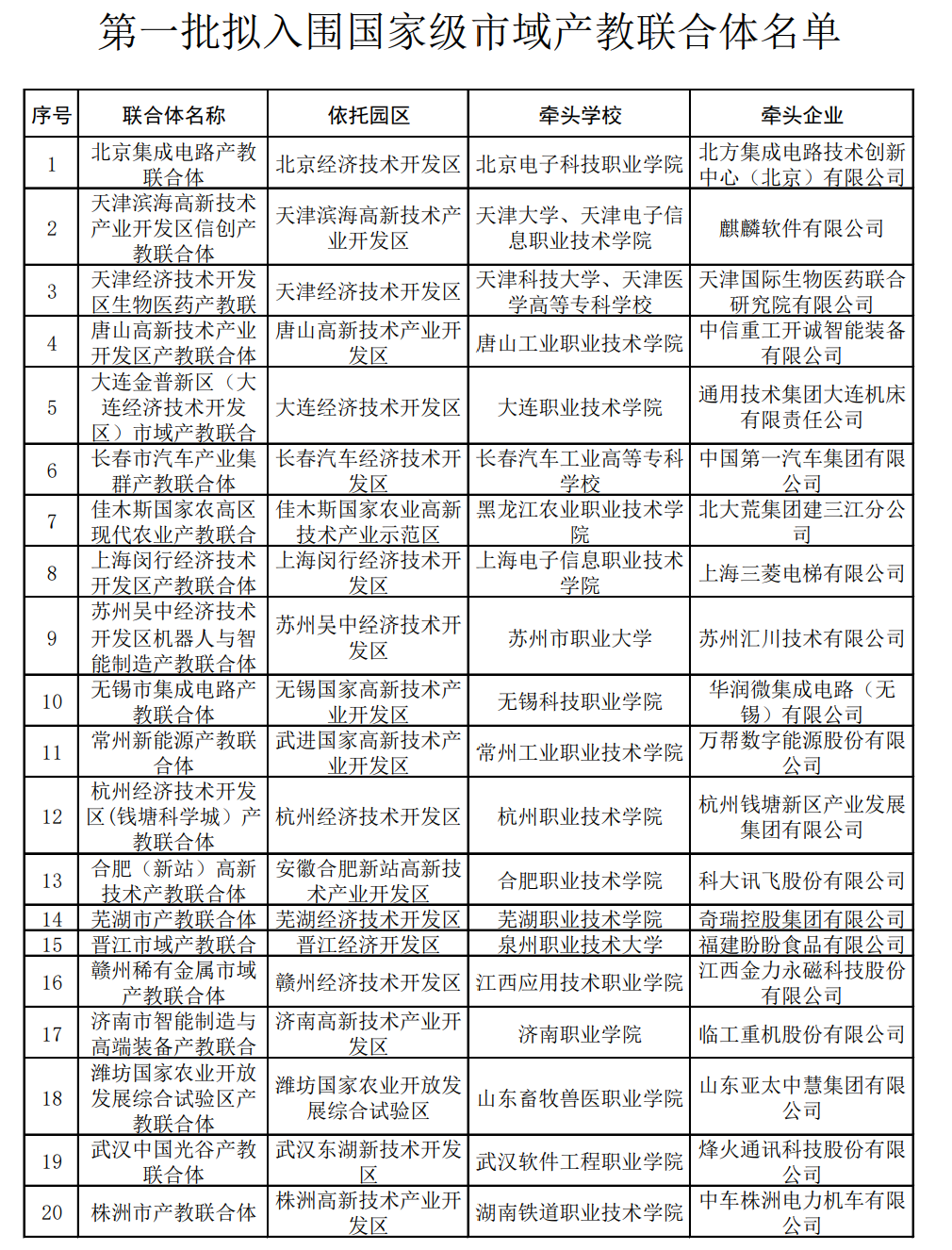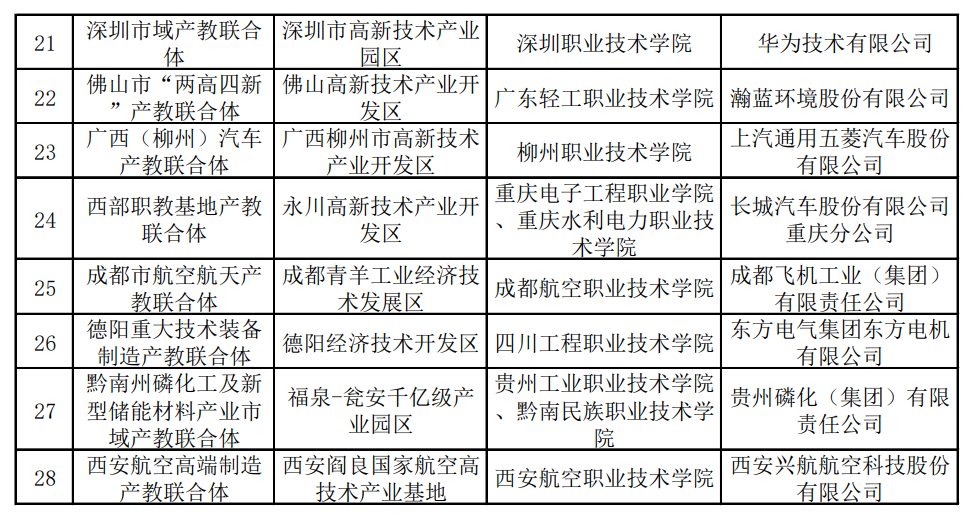 第一批擬入圍國(guó)家級(jí)市域產(chǎn)教聯(lián)合體名單(教育部官方網(wǎng)站截圖,央廣網(wǎng)發(fā))