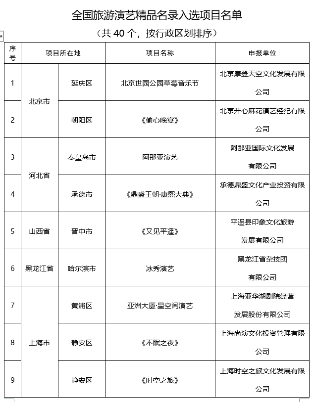 共40個!全國旅游演藝精品名錄入選項目名單出爐