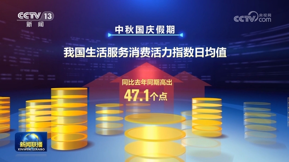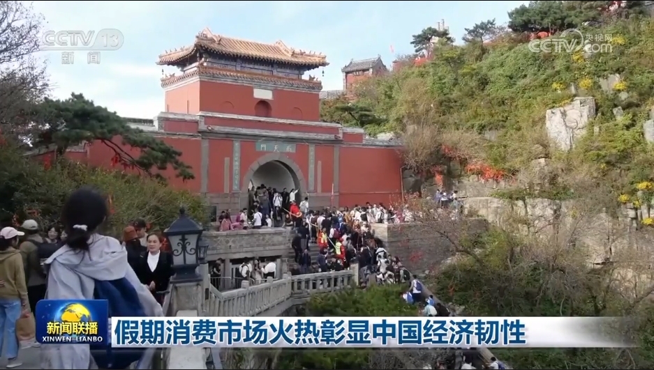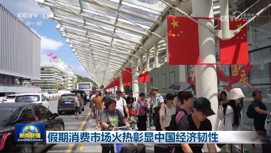 央視網(wǎng)消息(新聞聯(lián)播):中秋國慶假期,強勁需求和優(yōu)質(zhì)供給雙向發(fā)力,城鄉(xiāng)市場人氣旺盛、活力澎湃,有力釋放多層次多樣化消費需求,彰顯出中國經(jīng)濟的強大韌性。