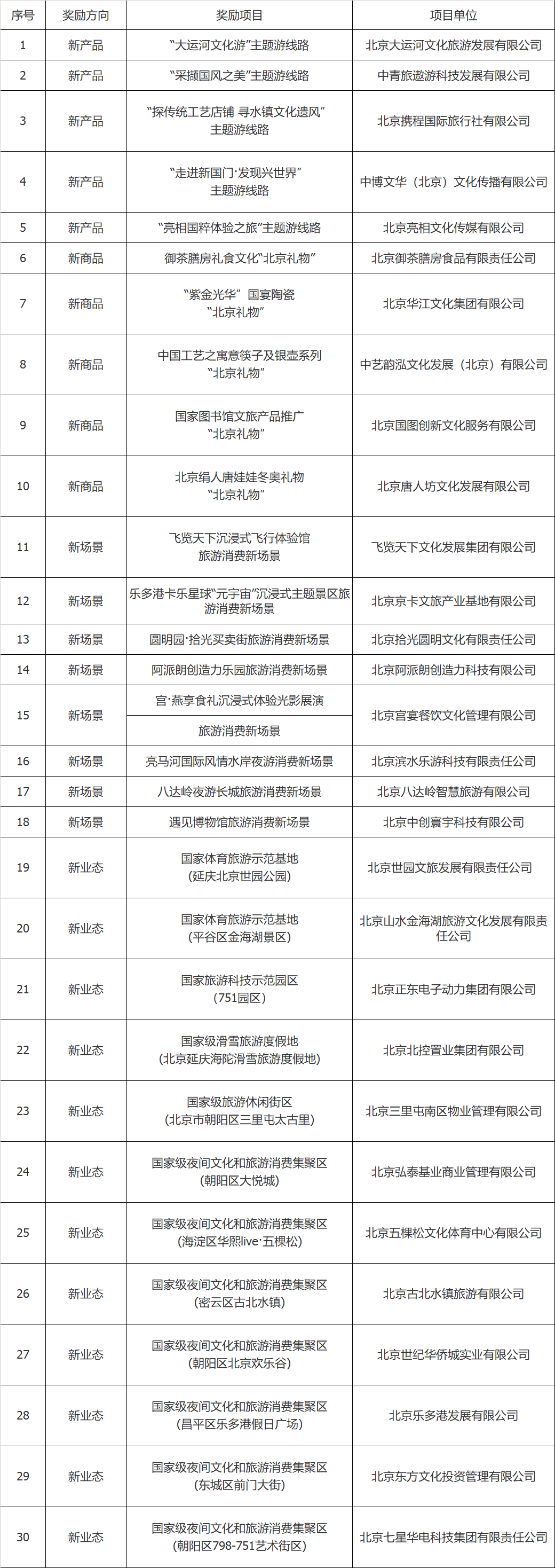 央廣網(wǎng)北京11月7日消息(記者 秦立玲)據(jù)北京市文化和旅游局消息,按照《北京市擴大文化和旅游新消費獎勵辦法》(京文旅發(fā)〔2022〕99號)有關要求,經(jīng)征集、專家評審及社會公示等程序,北京市文化和旅游局已確定“大運河文化游”主題游線路等30個新產(chǎn)品、新商品、新場景、新業(yè)態(tài)入選2022年北京市擴大文化和旅游新消費獎勵項目名單。
