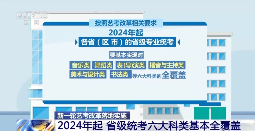 按照藝考改革相關(guān)要求,2024年起,各?。▍^(qū)、市)的省級(jí)專業(yè)統(tǒng)考要基本實(shí)現(xiàn)對(duì)音樂類、舞蹈類、表(導(dǎo))演類、播音與主持類、美術(shù)與設(shè)計(jì)類、書法類等六大科類的全覆蓋。戲曲類實(shí)行省際聯(lián)考。對(duì)于考試組織確有困難的個(gè)別科類,有關(guān)省份可通過省際聯(lián)考或“考評(píng)分離”等方式實(shí)施。據(jù)介紹,上海市已按照最新要求,對(duì)藝術(shù)類專業(yè)統(tǒng)考進(jìn)行了調(diào)整。
