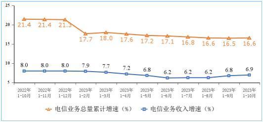 電信業(yè)務(wù)收入和電信業(yè)務(wù)總量累計(jì)增速 圖片來源:工信部網(wǎng)站
