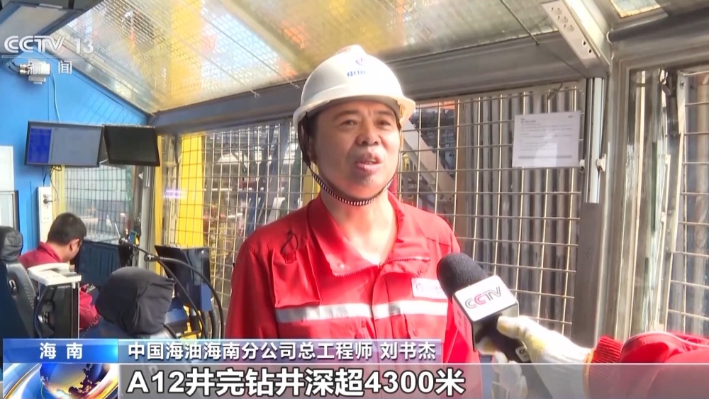 中國海油海南分公司總工程師 劉書杰:A12井完鉆井深超過4300米,至此,“深海一號”二期項目鉆井總進尺已超過50000米,相當于6座珠穆朗瑪峰的高度,鉆井作業(yè)總體進度達到90%,為項目按時投產(chǎn)奠定堅實基礎。