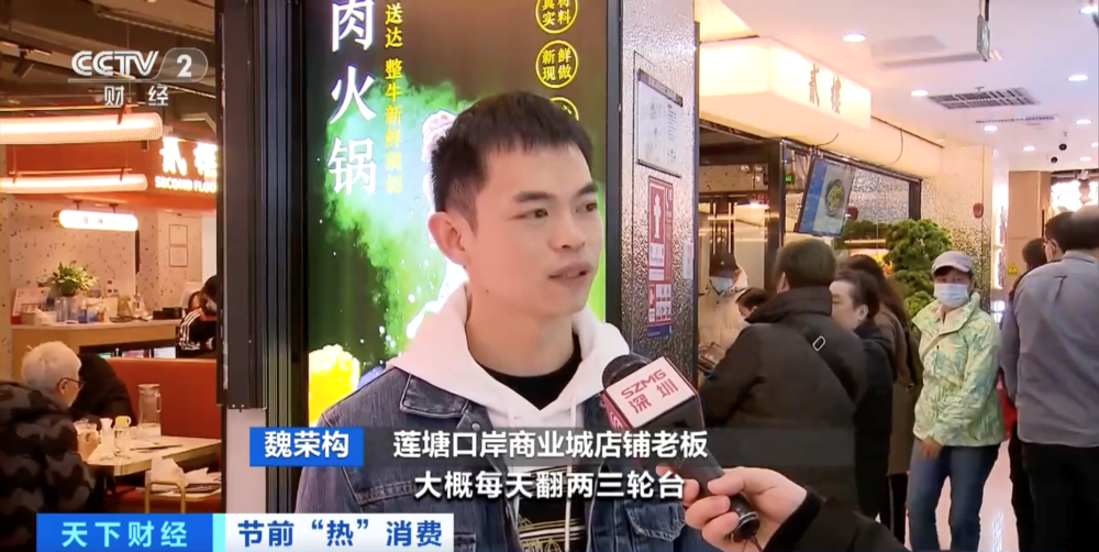 廣東深圳羅湖區(qū)某餐飲店店長 陳楚姍:我們這里有90%都是香港客戶,平均一天280多張臺(tái)到300張臺(tái)是沒有問題的。這個(gè)月營業(yè)額比上個(gè)月提升了30%多 。