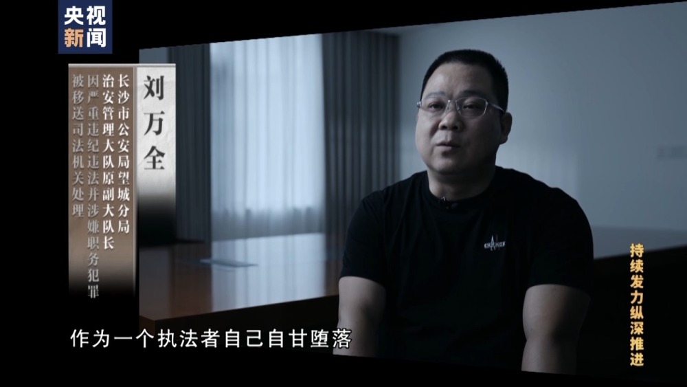 長沙市公安局望城分局治安管理大隊原副大隊長 劉萬全:總共送了兩萬三還是兩萬五千塊錢。作為一個執(zhí)法者,自己自甘墮落,為了這些蠅頭小利,貪小利貪小便宜,沒有守住紀(jì)律的、法律的底線。