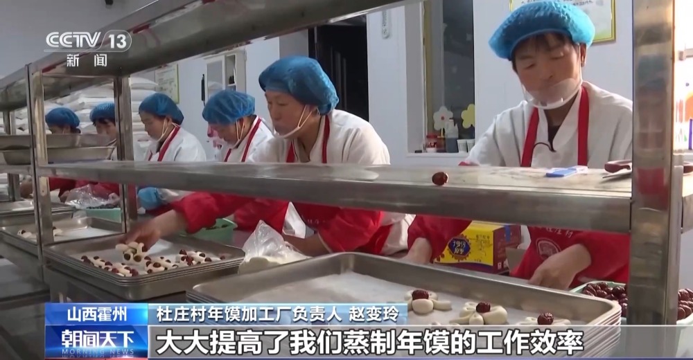 霍州市杜莊村年饃加工廠負(fù)責(zé)人 趙變玲:以前一天只能蒸制20袋面,現(xiàn)在可以提高到50袋,大大提高了我們蒸制年饃的工作效率,村民收入也有了成倍提高。