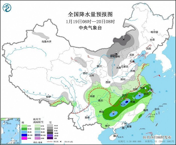 中央氣象臺(tái):今明兩天中東部雨雪持續(xù) 20日起寒潮將強(qiáng)勢(shì)入侵