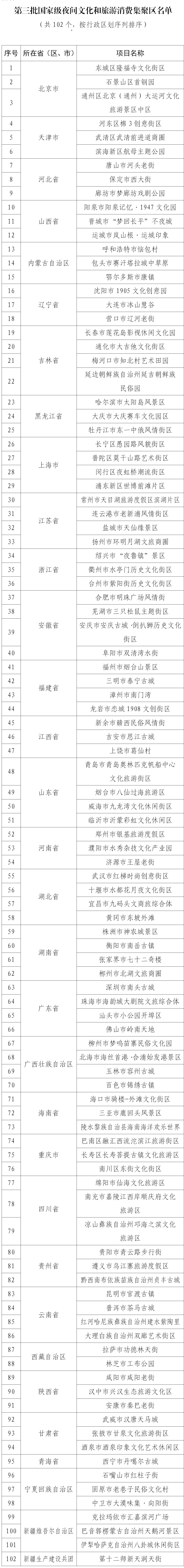 第三批國家級夜間文化和旅游消費集聚區(qū)名單: