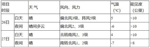 預計,26日至27日北京天氣以晴為主,其中26日白天有3級偏北風,陣風5級左右,27日風力不大;其間白天最高氣溫4~5℃,夜間最低氣溫-7~-6℃。具體預報見附表: