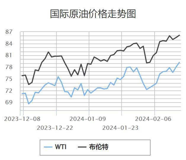 本周期橫跨春節(jié)假期前后,原油市場(chǎng)整體偏強(qiáng)運(yùn)行。截至上周五(當(dāng)?shù)貢r(shí)間2月16日)收盤(pán),WTI 3月原油期貨收漲1.16美元,漲幅1.49%報(bào)79.19美元/桶;布倫特4月原油期貨收漲0.61美元,漲幅0.74%報(bào)83.47美元/桶。