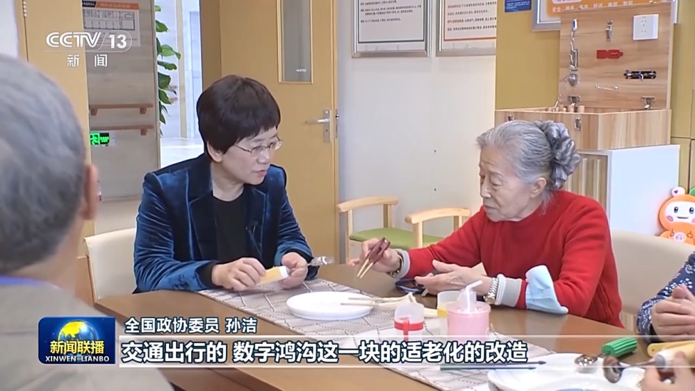 全國政協(xié)委員 孫潔:一方面是有居家的適老化改造,還有社區(qū)的適老化改造,交通出行的數(shù)字鴻溝這一塊的適老化改造,要實(shí)現(xiàn)一個(gè)老年友好型的社會(huì)的建設(shè)。