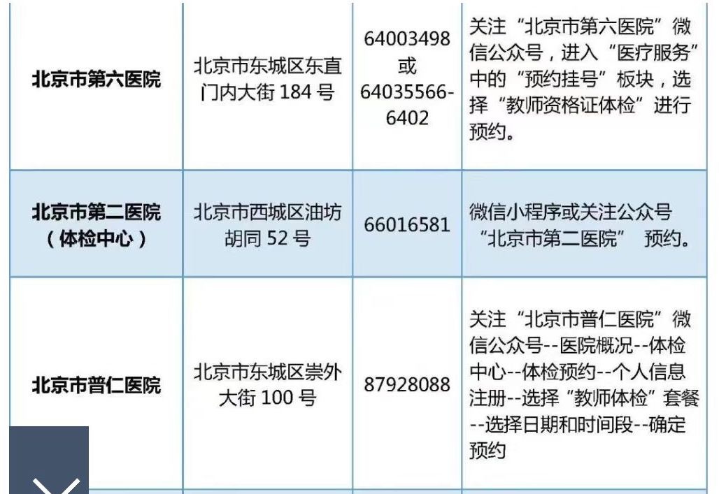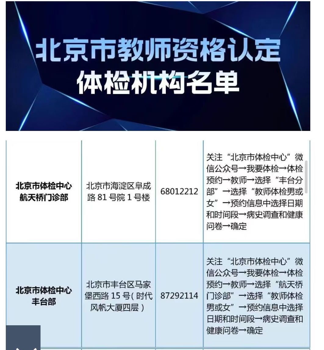 尚未進(jìn)行體檢的請自行與體檢機(jī)構(gòu)聯(lián)系完成體檢。北京市體檢中心將于3月中下旬在豐臺部、航天橋門診部和馬甸部舉行多場教師資格認(rèn)定體檢專場。具體時(shí)間安排可聯(lián)系相應(yīng)機(jī)構(gòu)咨詢。