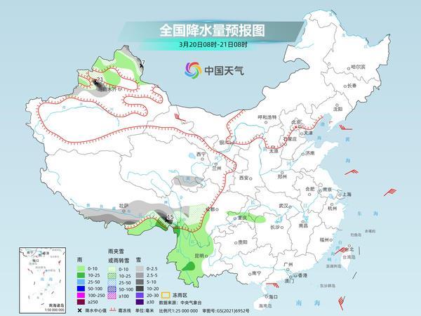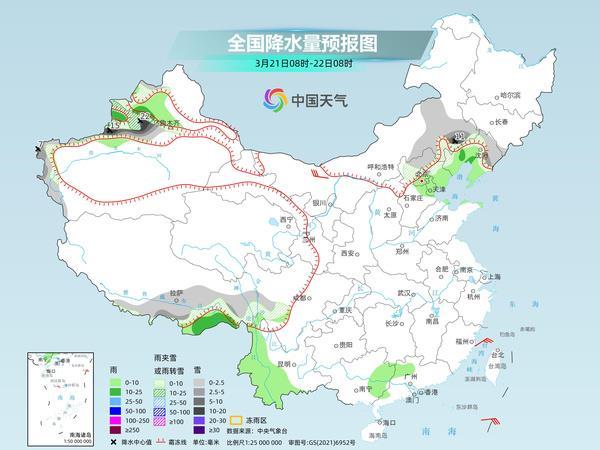后天,內(nèi)蒙古東北部、黑龍江東南部、吉林東部、新疆北部和南疆西部山區(qū)高海拔地區(qū)、西藏北部和東南部、青海西部等地部分地區(qū)有小到中雪或雨夾雪,其中,吉林東部、新疆北疆北部等地部分地區(qū)有大雪,局地暴雪。內(nèi)蒙古東南部、黑龍江南部、吉林中西部、遼寧中東部、西藏東南部、云南西部和南部、河南中南部、安徽大部、江蘇中南部、湖北大部、江西中北部、湖南北部和東部、重慶、四川東部、貴州北部和東南部、廣西中西部、廣東北部等地部分地區(qū)有小到中雨,其中,遼寧東部、河南南部、安徽北部、湖南西部等地局地有大雨。