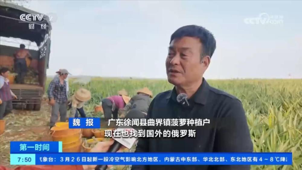 廣東徐聞縣曲界鎮(zhèn)菠蘿種植戶 魏報(bào):現(xiàn)在也找到國(guó)外的俄羅斯,我們都引進(jìn)了不少客戶過(guò)來(lái)。