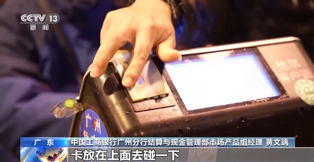 中國(guó)工商銀行廣州分行結(jié)算與現(xiàn)金管理部市場(chǎng)產(chǎn)品組經(jīng)理 黃文瑀:卡放在上面去碰一下,做一個(gè)身份識(shí)別,然后再把商品放在秤上面去稱(chēng)重??梢钥吹秸麄€(gè)交易的總金額是多少,實(shí)時(shí)同步到我們這邊,去完成買(mǎi)賣(mài)雙方賬戶(hù)資金的轉(zhuǎn)賬。