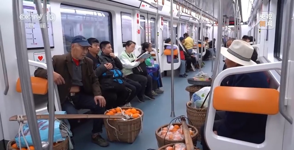 地鐵線沒通時,他們都會前往石船鎮(zhèn)和附近的場鎮(zhèn)去賣橙子,那時,老兩口便會挑著橙子走上1個多小時,行程8里地,才能到鎮(zhèn)上,但鎮(zhèn)上賣得并不好,果子時長會因?yàn)橘u不出去而爛在地里。今年一月開始,商戶上門收購,外加上每天乘地鐵去賣橙子,老兩口的橙子已經(jīng)銷售了8000多斤,剩下還有2000斤左右。有地鐵的便利加持,老兩口并不擔(dān)心爛在地里這件事兒,只盼著行情好些,能夠多賺些。