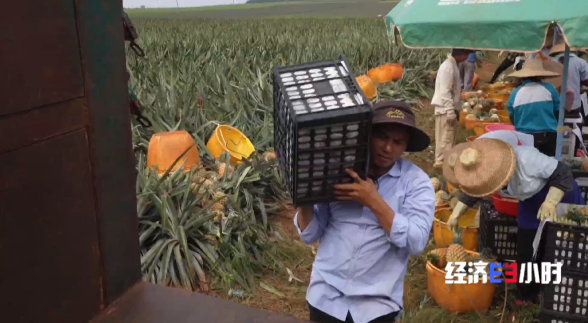 種植大戶朱學(xué)帝家的110畝菠蘿依次成熟,這天收割的5萬(wàn)斤菠蘿要在太陽(yáng)下山前發(fā)往甘肅蘭州。為了搶工,工人們從早上6點(diǎn)鐘干到下午四五點(diǎn)鐘,雖然很累,但是豐產(chǎn)不愁賣的紅火局面還是讓他們心里樂(lè)開(kāi)了花。