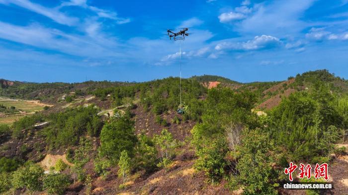 無(wú)人機(jī)運(yùn)輸苗木。廣東省林業(yè)局 供圖