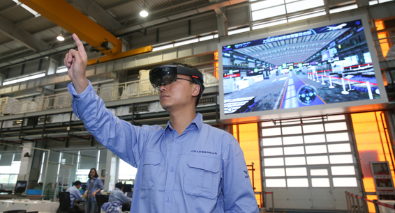 中國商飛公司總裝制造中心智慧數(shù)控車間主要承擔(dān)飛機(jī)零部件的研制、生產(chǎn)工作,其產(chǎn)品用于C919大型客機(jī)、ARJ21新支線客機(jī)。圖為工作人員在中國商飛公司總裝制造中心智慧數(shù)控車間使用AR眼鏡操控虛擬電子屏幕。新華社記者 丁汀 攝