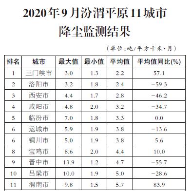 汾渭平原:渭南、呂梁、晉中最大值高于9.0噸/平方千米·月